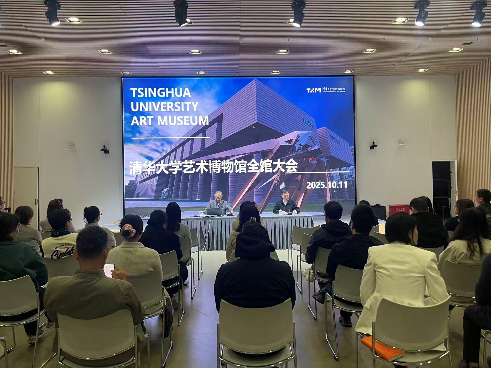 会上,鲁晓波馆长首先重温了清华大学艺术博物馆的建馆初衷定位与使命、发展历程与愿景目标,随后系统介绍了今年以来博物馆在展览策划、藏品管理、公共教育、社会影响力提升及运营管理等方面的工作进展。他重点通报了巡视整改工作的推进情况与重要举措,强调整改任务必须落到实处,并通过“见人见事”的警示教育,进一步增强全体职工的纪律意识和法治观念。鲁晓波还传达了学校正职干部暑期培训班及专题研讨班会议精神,要求全体人员认真学习领会,切实提高政治站位,深入贯彻中央八项规定精神,将作风建设融入日常工作全过程。同时,他就保密教育和安全教育作出重点强调,提醒全体职工筑牢纪律与安全防线。最后,鲁晓波对本年度第四季度的重点工作进行了部署。