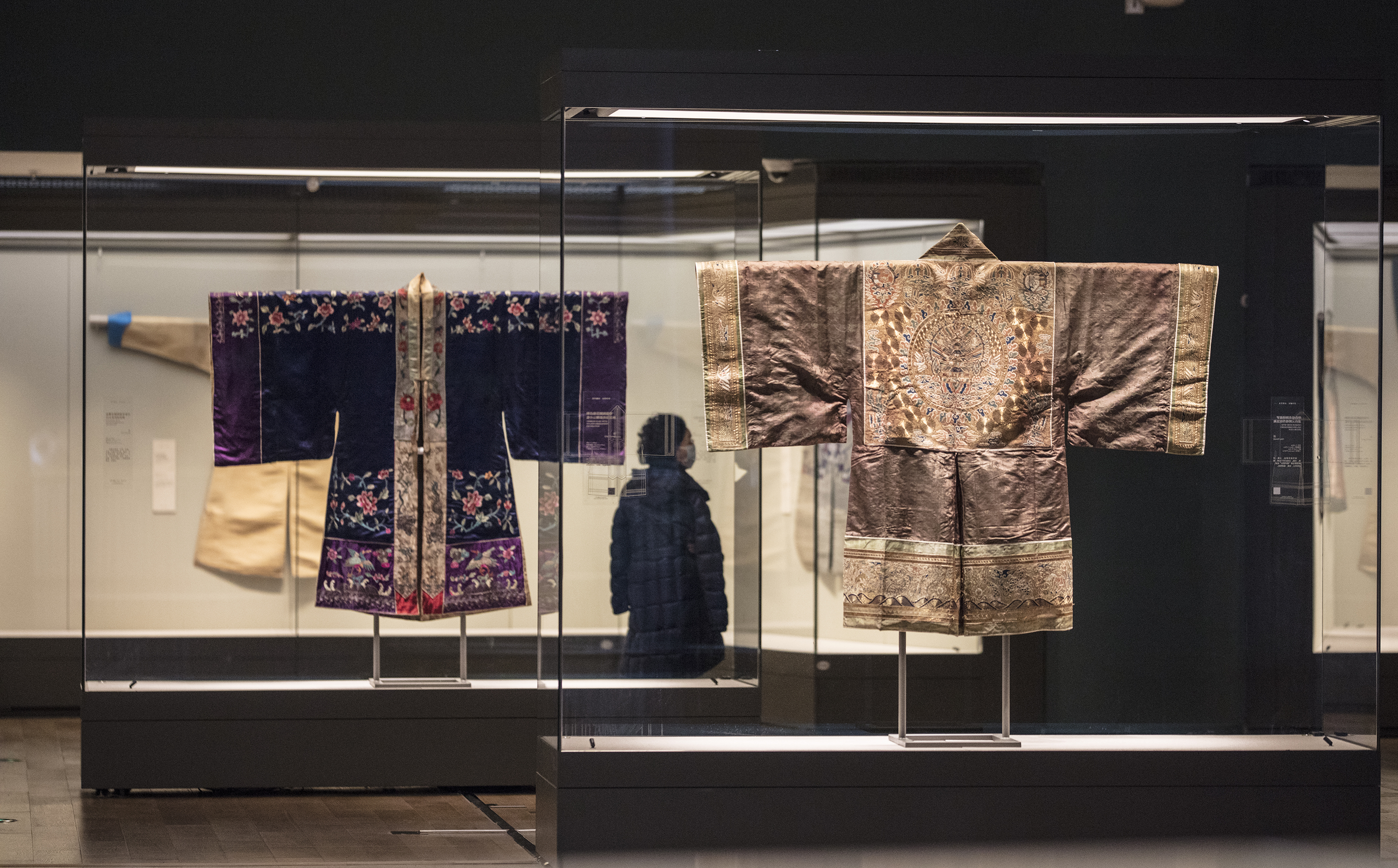 Textile Art is originated from China’s unique resources and cultural background. From the Ming and Qing dynasties, the exhibition contains more than 100 sets of weaving and embroidery items. They are divided into three categories based on fabrics, ready-made clothing accessories and appreciation collections: thus “Silk Fabrics”, “Gorgeous Clothes and Beautiful Accessories” and “Inspiration of Tapestry-embroidered Calligraphy and Painting”. By enduring the test of time, weaving and embroidery fabric become not only a valuable material for clothing, but also a carrier of culture and art. The superb weaving technology is a reflection of national wisdom; the exquisite embroidery patterns are the embodiment of good wishes. It is our aspiration that viewers will feel the beauty of weaving and embroidery that ancestors embodied within the creative design and excellent craftsmanship.