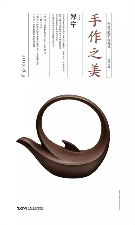 2017年6月3日下午,清华艺博“手作之美”第8期陶艺探究课(会员专场)在博物馆一层陶艺坊举行,由清华大学美术学院陶瓷艺术设计系教授郑宁主讲,艺术博物馆副馆长杨冬江担任活动主持。学生、普通、高级、家庭等各类艺博会员参加了此次活动。本次活动主要包含传统陶艺理论解析及陶艺手工拉坯实践两个部分。