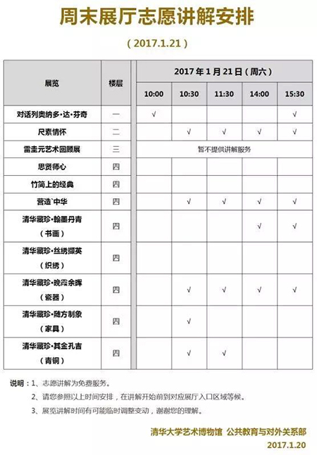 清华大学艺术博物馆 周末展厅志愿讲解安排(2017年1月21日)