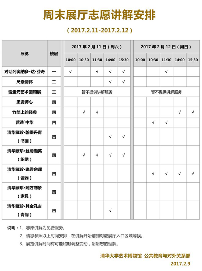 清华大学艺术博物馆 周末展厅志愿讲解安排(2017年2月11日-12日)