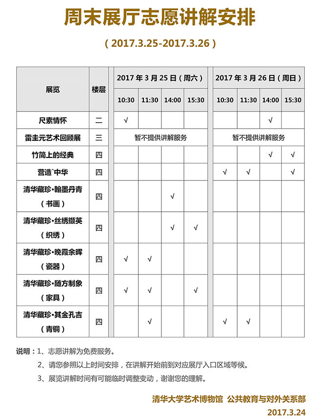清华大学艺术博物馆 周末展厅志愿讲解安排(2017年3月25日-26日)
