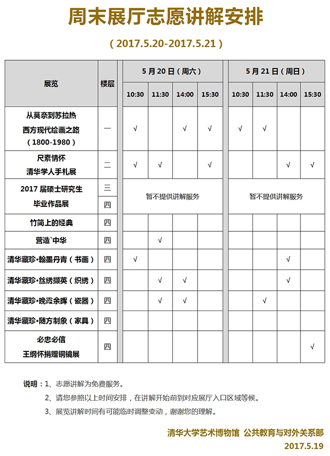 清华大学艺术博物馆 周末展厅志愿讲解安排(2017年5月20日-21日)