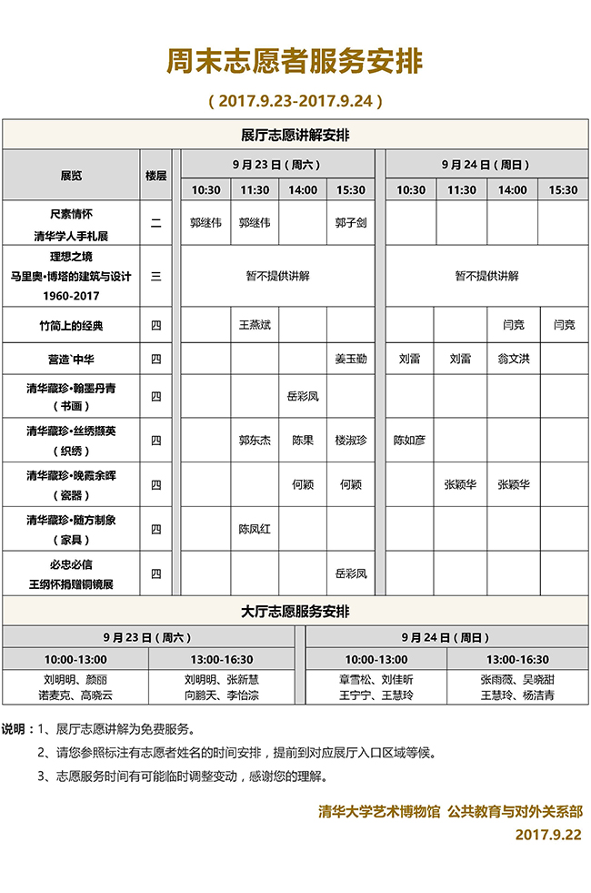 清华大学艺术博物馆 周末展厅志愿讲解安排(2017年9月23日-24日)
