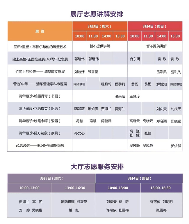说 明: 1、展厅志愿讲解为免费服务。 2、请您提前到对应展厅入口处等候。 3、志愿服务时间有可能临时变动,感谢您的理解。
