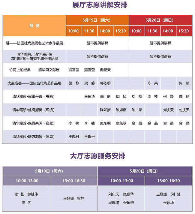 说 明: 1、展厅志愿讲解为免费服务。 2、请您提前到对应展厅入口处等候。 3、志愿服务时间有可能临时变动,感谢您的理解。