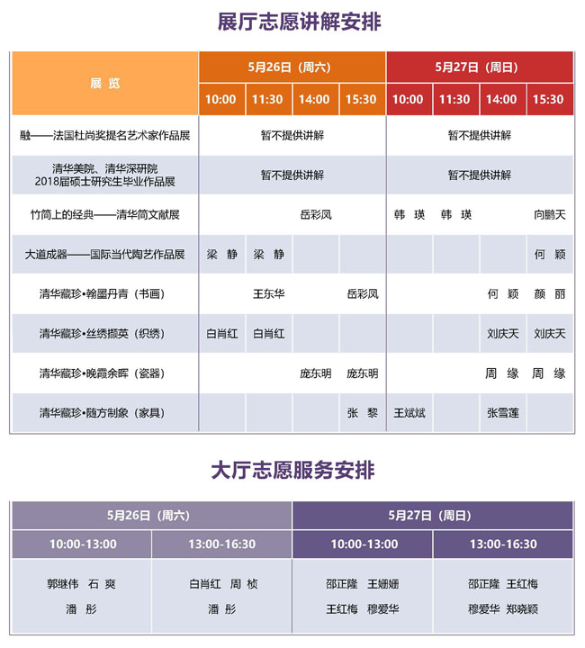 说 明: 1、展厅志愿讲解为免费服务。 2、请您提前到对应展厅入口处等候。 3、志愿服务时间有可能临时变动,感谢您的理解。