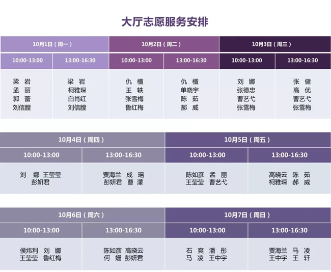 说 明: 1、展厅志愿讲解为免费服务。 2、请您提前到对应展厅入口处等候。 3、志愿服务时间有可能临时变动,感谢您的理解。