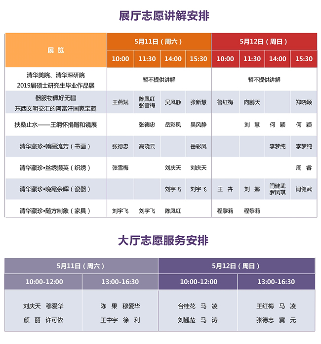 说 明: 1、展厅志愿讲解为免费服务。 2、请您提前到对应展厅入口处等候。 3、志愿服务时间有可能临时变动,感谢您的理解。