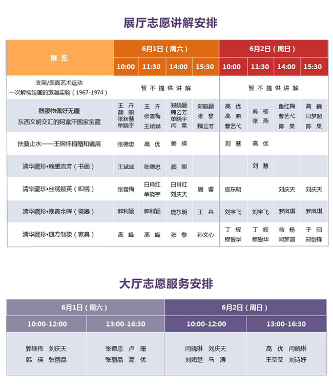 说 明: 1、展厅志愿讲解为免费服务。 2、请您提前到对应展厅入口处等候。 3、志愿服务时间有可能临时变动,感谢您的理解。