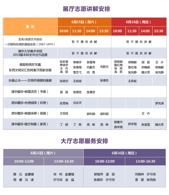 说 明: 1、展厅志愿讲解为免费服务。 2、请您提前到对应展厅入口处等候。 3、志愿服务时间有可能临时变动,感谢您的理解。