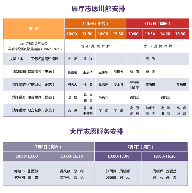 说 明: 1、展厅志愿讲解为免费服务。 2、请您提前到对应展厅入口处等候。 3、志愿服务时间有可能临时变动,感谢您的理解。